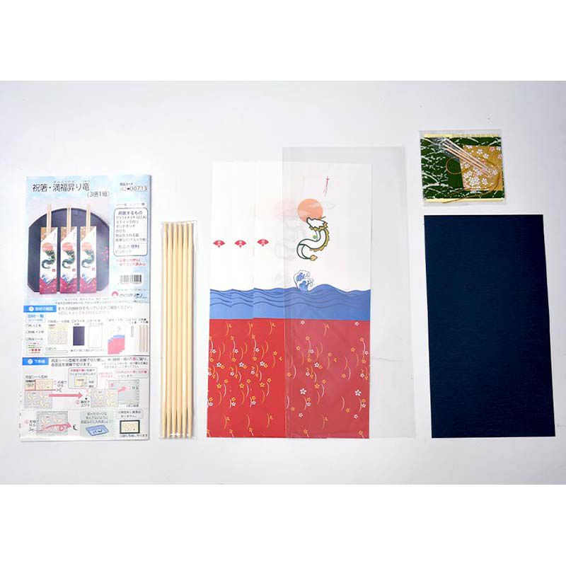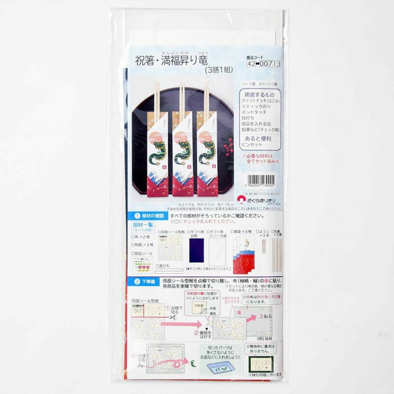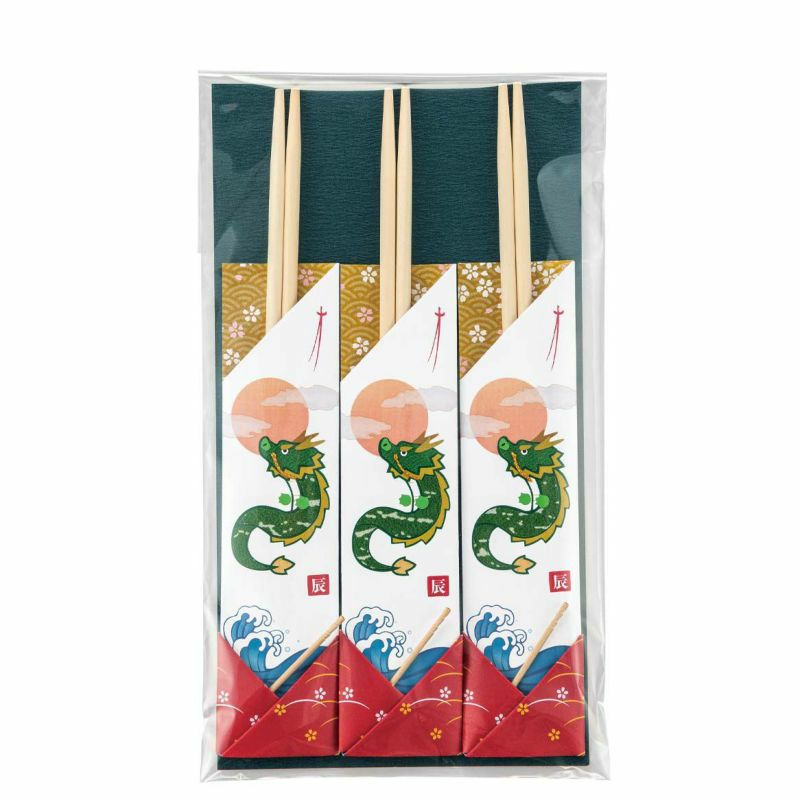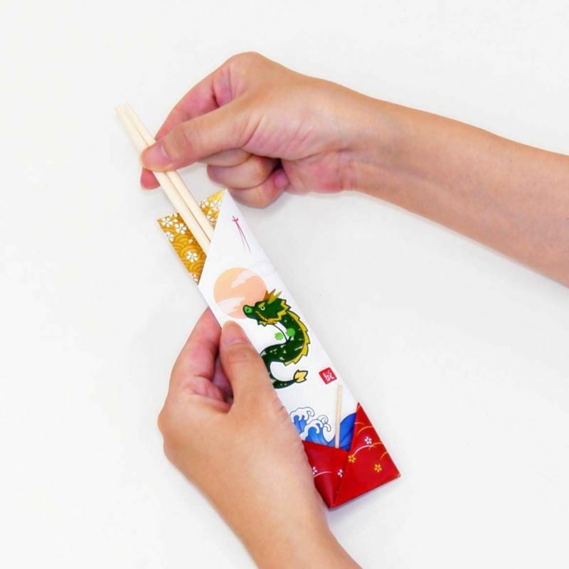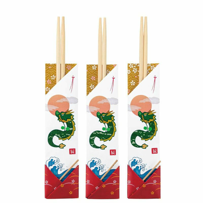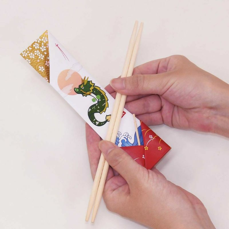 在慶祝活動中必不可少的祝筷,可以輕鬆製作。龍飛向旭日的吉祥圖案。新年的餐桌將更加快樂。
