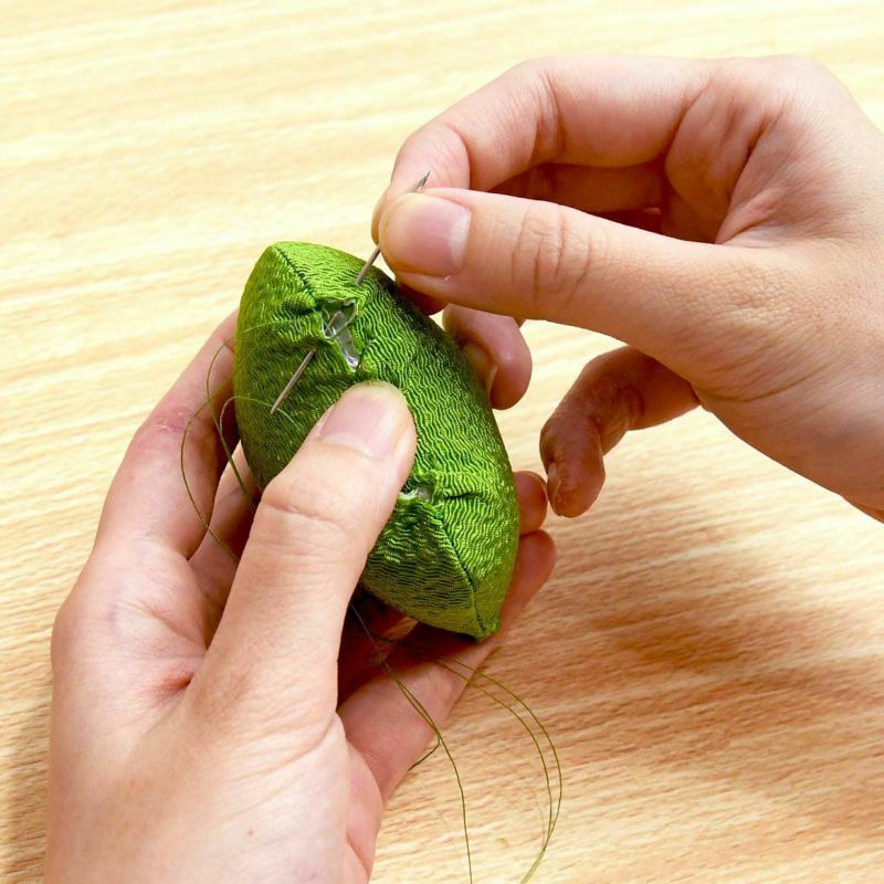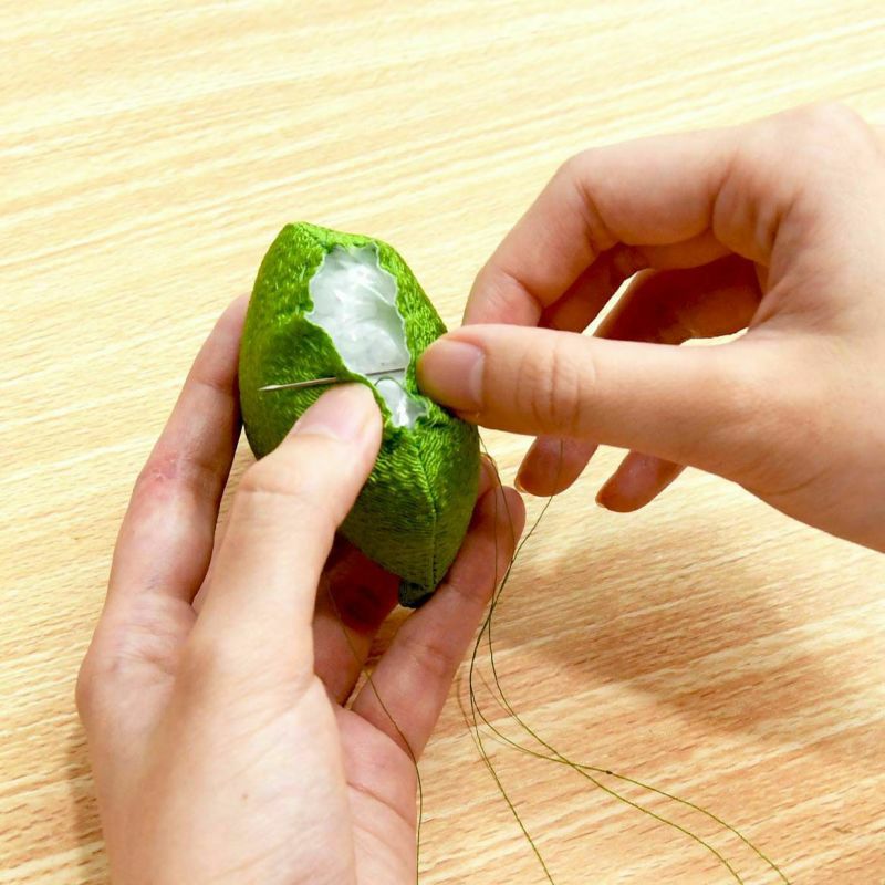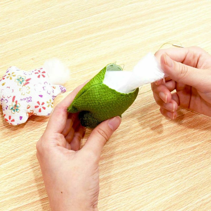 - 在半縫製的雲朵內填充棉花,然後用藏針縫合完成。