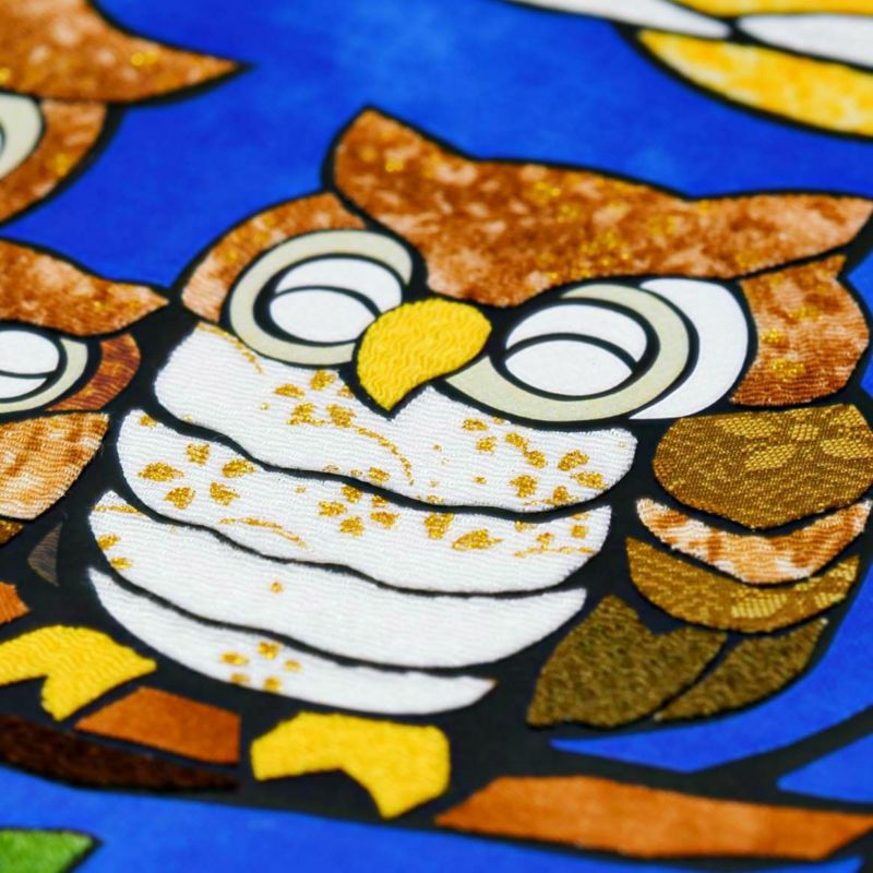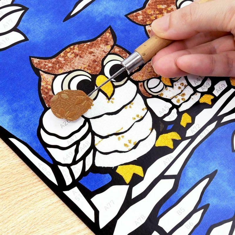 只需簡單的剪裁和黏貼步驟,就能製作出正宗布畫的櫻花藝術A4尺寸。在月夜中,溫暖地守護著熟睡小貓頭鷹的父母形象讓人感到舒心療癒。