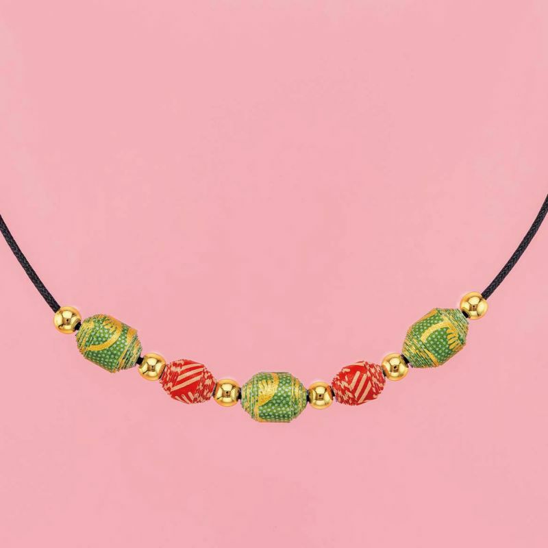 光澤加工的和紙製作的和紙簡易捲紙項鍊。簡單製作,猶如蜻蜓玉或七寶燒般時尚的項鍊。