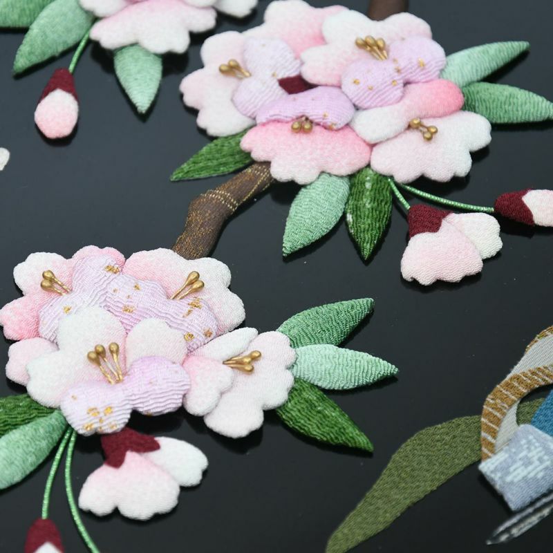 櫻花花瓣用押絵精細製作。即使是押絵高手也會對成品感到滿意。