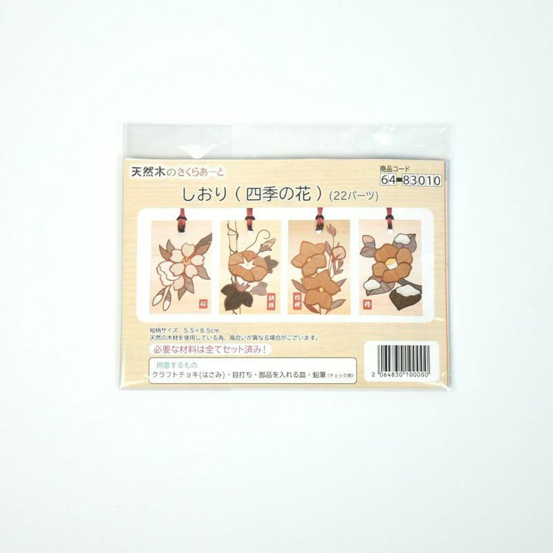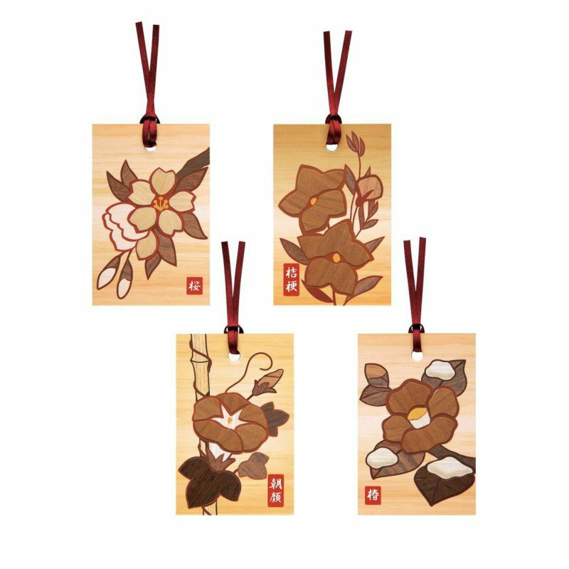 櫻花、牽牛花、桔梗花、山茶花的季節花朵書籤,使用木材膜製作。每張約20分鐘即可輕鬆製作,因此非常適合首次挑戰天然木的櫻花藝術的朋友。