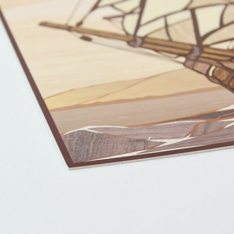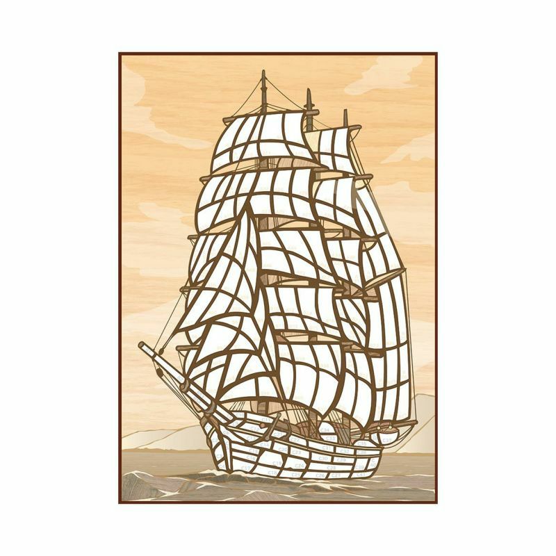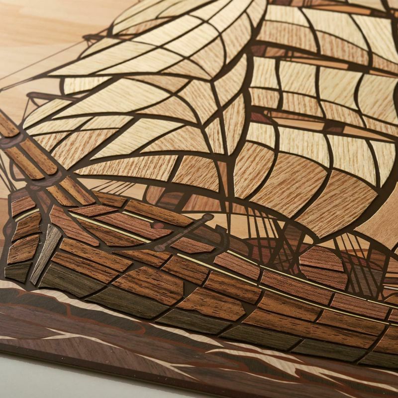 保留受風帆船及船體細節的畫像,用天然木材的典雅色調及木紋製作,享受高滿意度的作品製作。