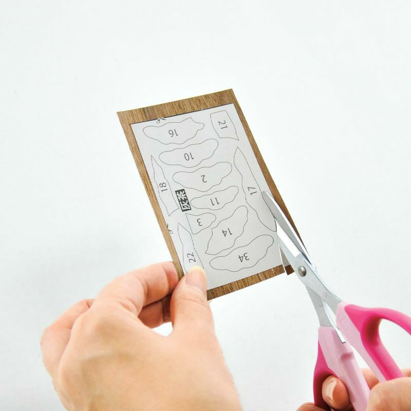 細節部分預先在底圖上印刷,使用與木片相同的木紋,打造高完成度的作品。