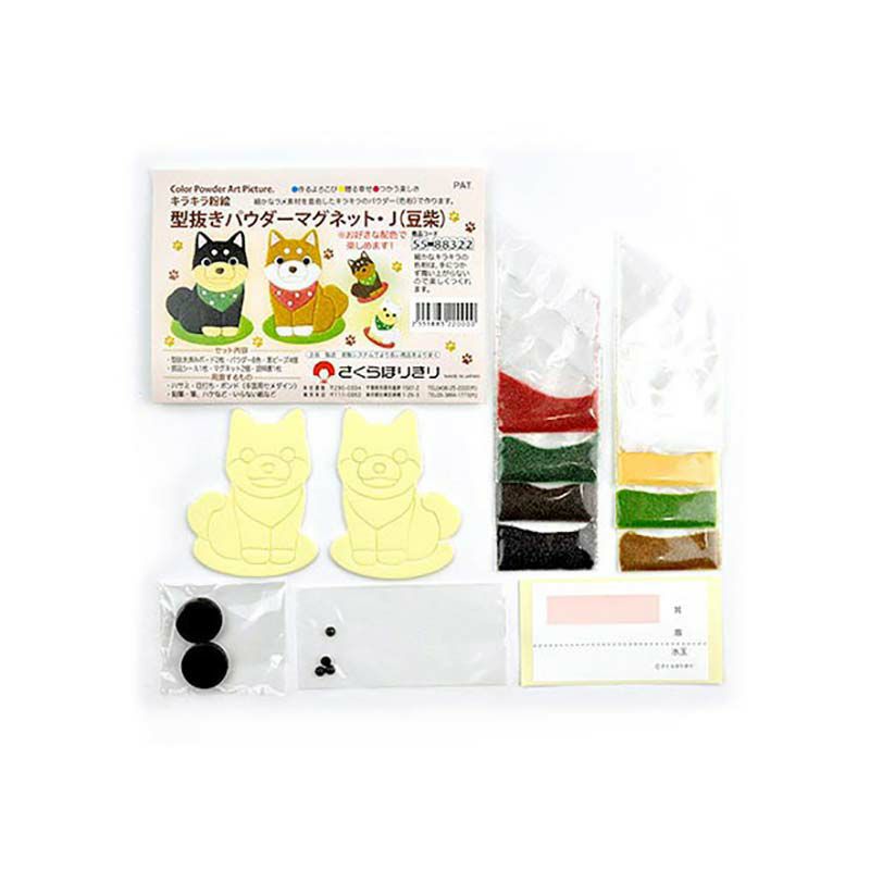 砂画的新手可以輕鬆上手的粉末藝術。帶有可愛波點頭巾的「柴犬」磁鐵。您可以根據自己的喜好改變粉末的配色。